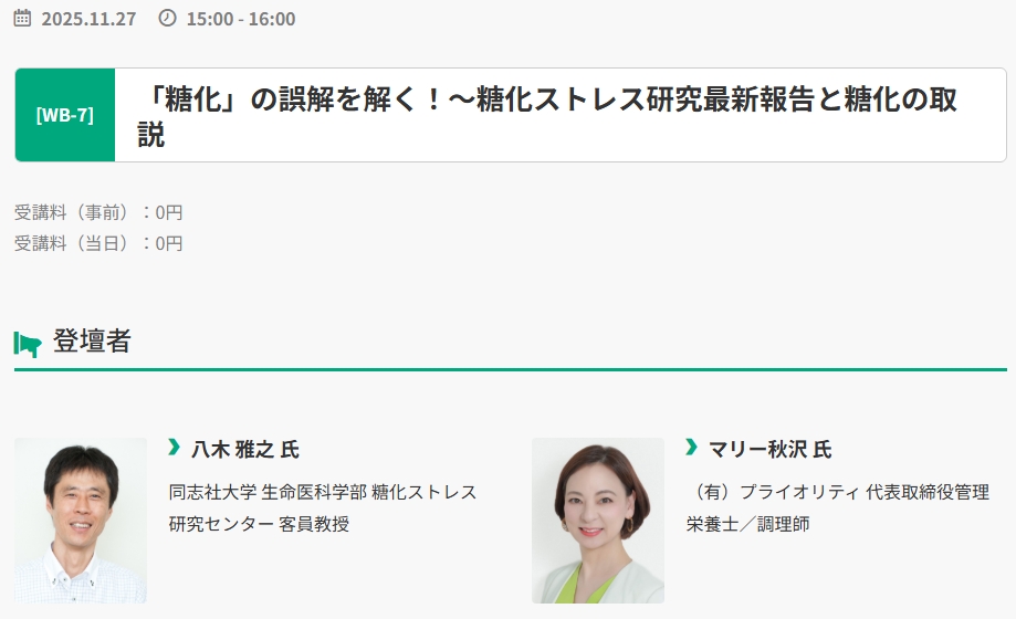 テーマは『糖化」の誤解を解く!~糖化ストレス研究最新報告と糖化の取説』
